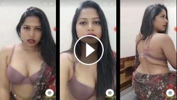 Horny Bhabhi Heighty Semi Naked Livestream Exposing Her Sexy Curves in Saree